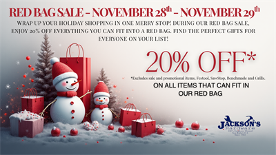 excludes sale and promo items Festool, SawStop & Benchmade knivesRED BAG SALE 20% OFF Everything you c...Date and Time